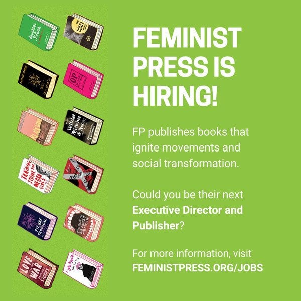MT @jamiaw My friends at @FeministPress are looking for a new ED to lead its next chapter. If you love books + feminism, this is the job for you.