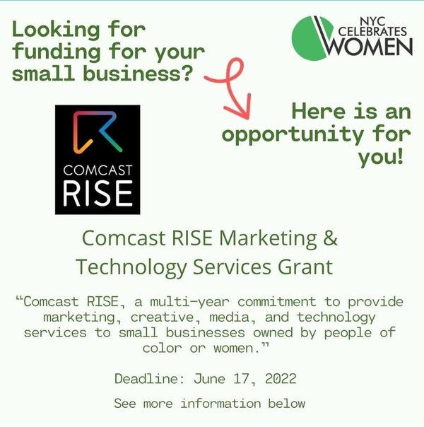 MT @nyccwomen #opportunity “Comcast RISE has provided more than $60 million in grants, marketing and technology services to more than 6,700 small business owned by people of color — including Black, Indigenous, Hispanic, and Asian Americans.” #woc #Entrepreneur