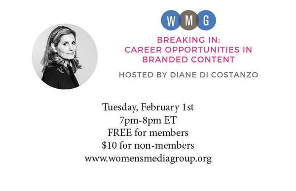 There are an estimated 56% more job openings in branded content versus traditional journalism. Come learn how to find a job or writing opportunity, what the work entails, and where the industry is headed at this virtual @WMG_NYCevent on 2/1 at 7pm ET. $10 for non-members. FREE for members. LAST CHANCE to register.