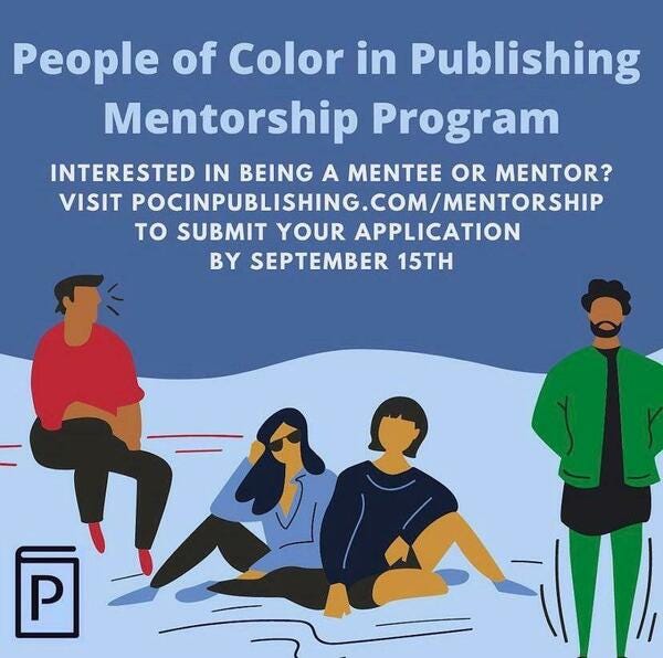 MT @PocPub Call For People Of Color In Publishing Mentorship Program. Interested In Being A Mentee Or Mentor? Submit Your Application by September 15th!