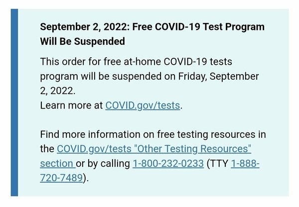 The federal government has announced that the USPS program for free rapid tests will be ending on Fri. Sept 2