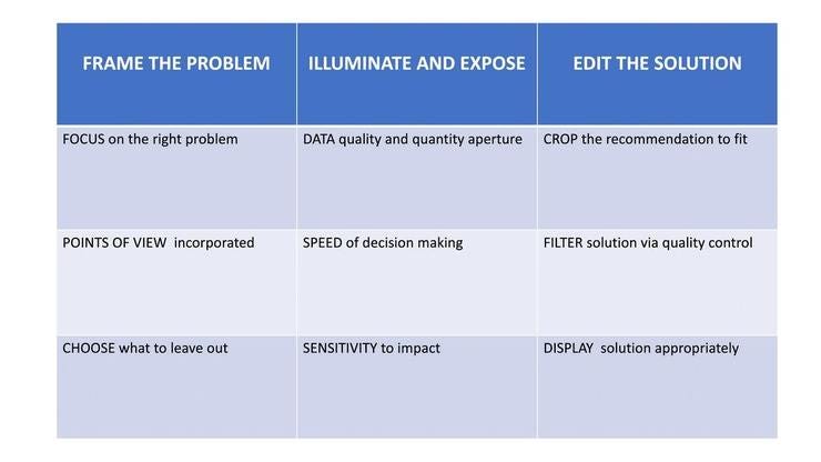 RT @rishad One can learn to be a better problem solver by learning from great photographers . Frame the problem correctly. Expose and illuminate it with the right input and data while ensuring timely decision making. Edit the solution appropriately.